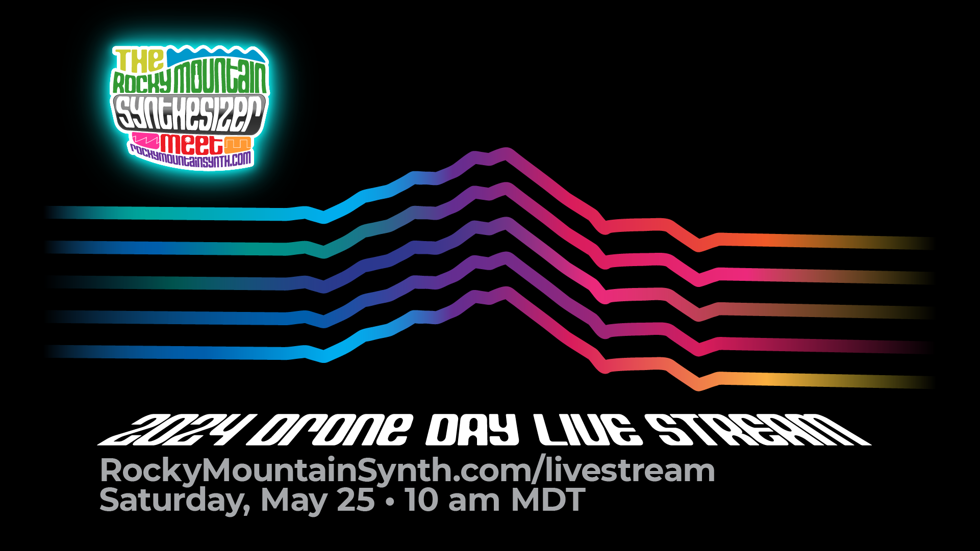 This event marks our third time hosting a live stream for Drone day, and this year’s event will feature original drone music videos from 14 Rocky Mountain Synthesizer Meet members with a running time of about 1.5 hours.
